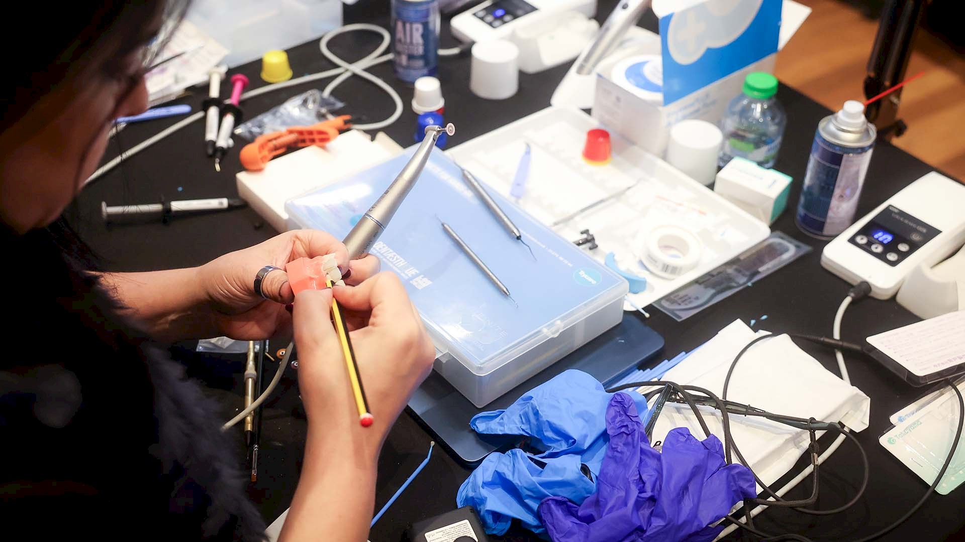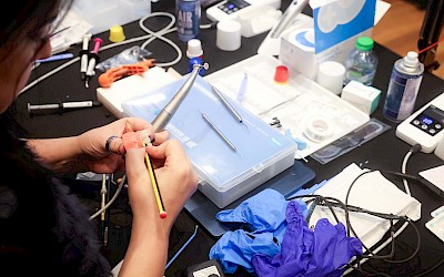 Der zweite Tag stand ganz im Zeichen des praktischen Arbeitens. In einem rekordverdächtigen Format übten 100 Teilnehmerinnen und Teilnehmer gemeinsam mit Dr. Newton Fahl Jr und 20 Tutor/-innen anspruchsvolle Anterior-Schichttechniken – begleitet von individueller Anleitung und direktem Feedback.