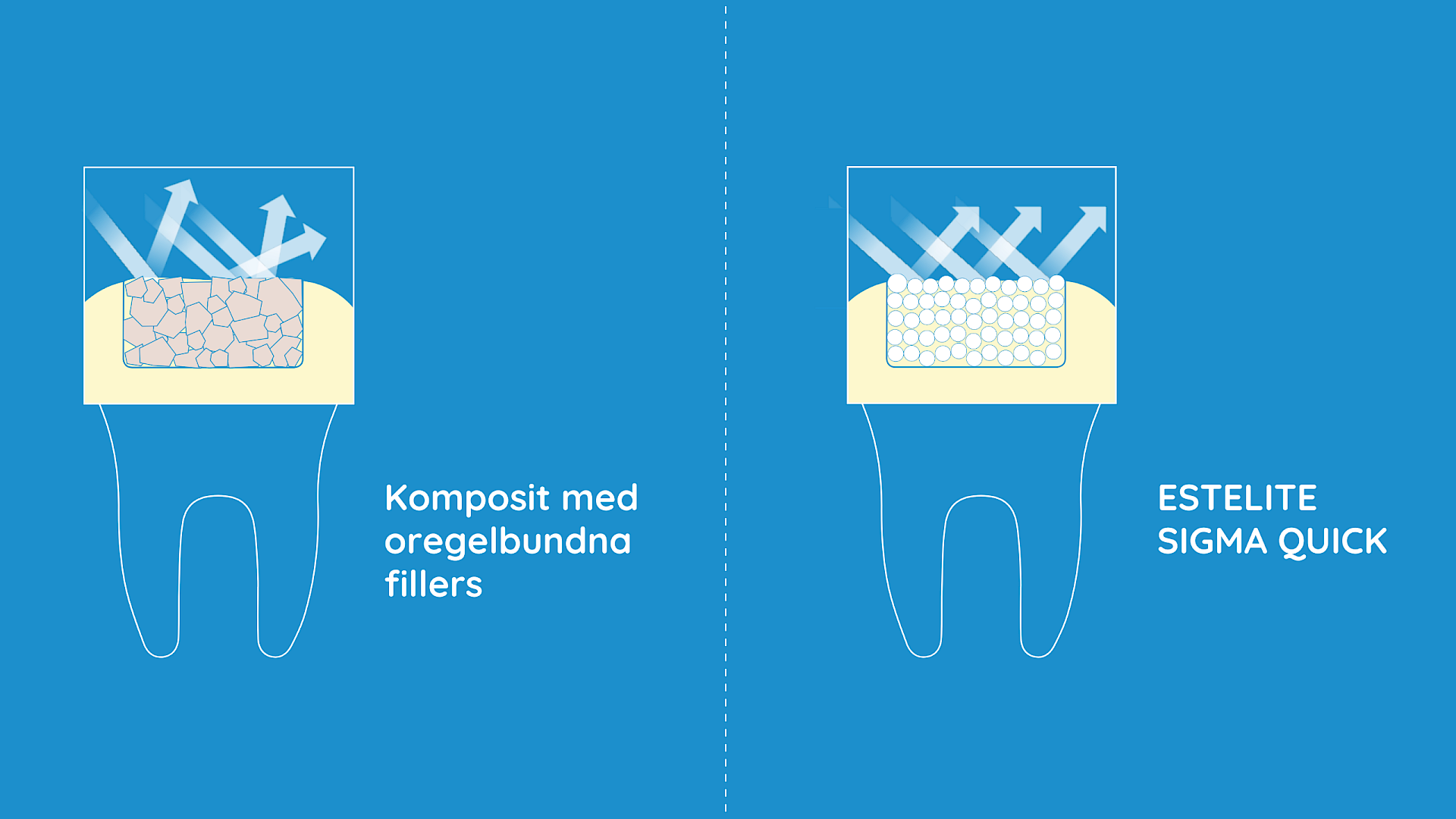 Den pastaliknande universalkompositen ESTELITE SIGMA QUICK möjliggör högestetiska restaureringar i främre och bakre områden. Sfäriska submikrofillers (0,2 μm) ger hög färgstabilitet, naturlig glans och mycket släta ytor – för restaureringar som smälter in harmoniskt i den naturliga tandstrukturen.